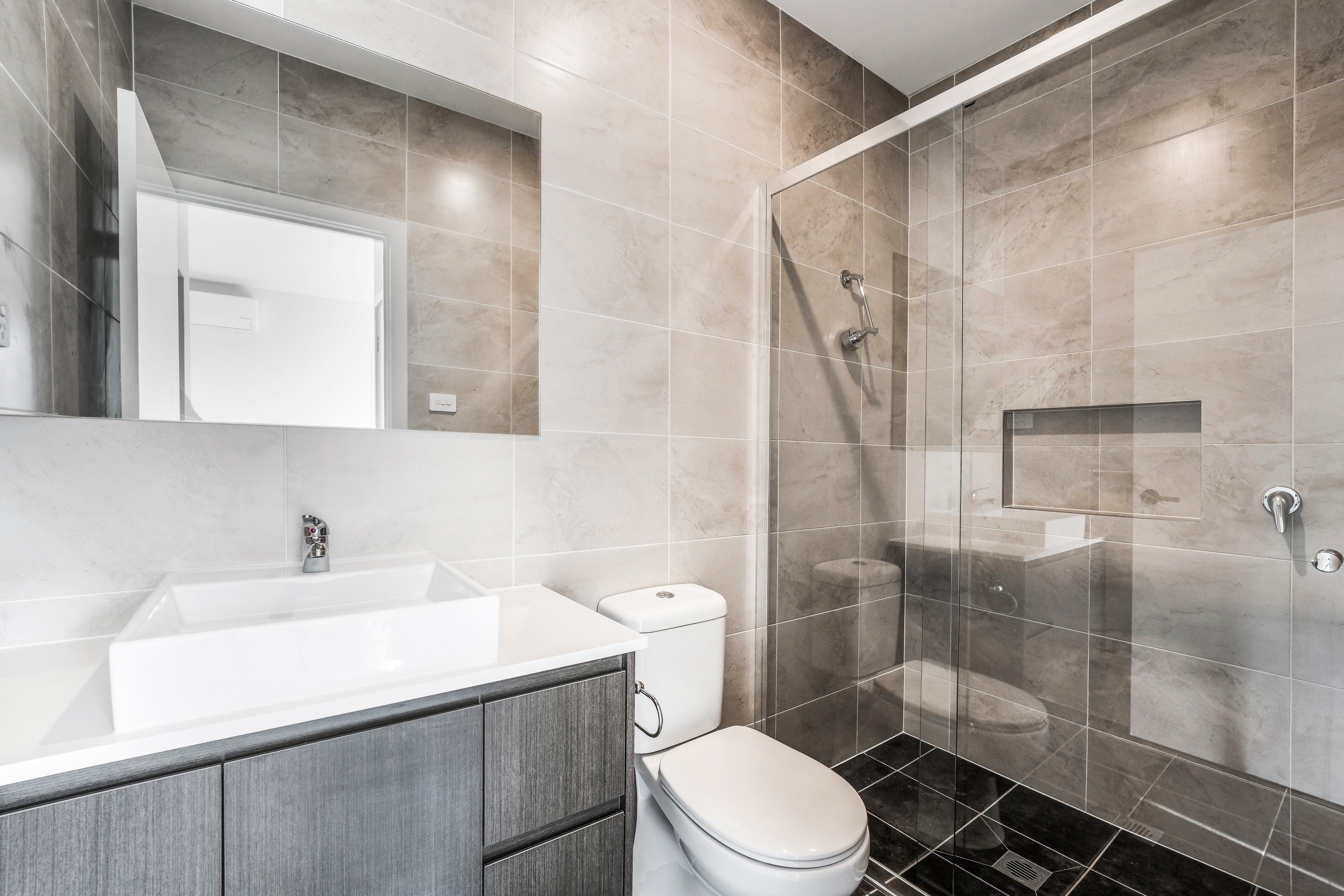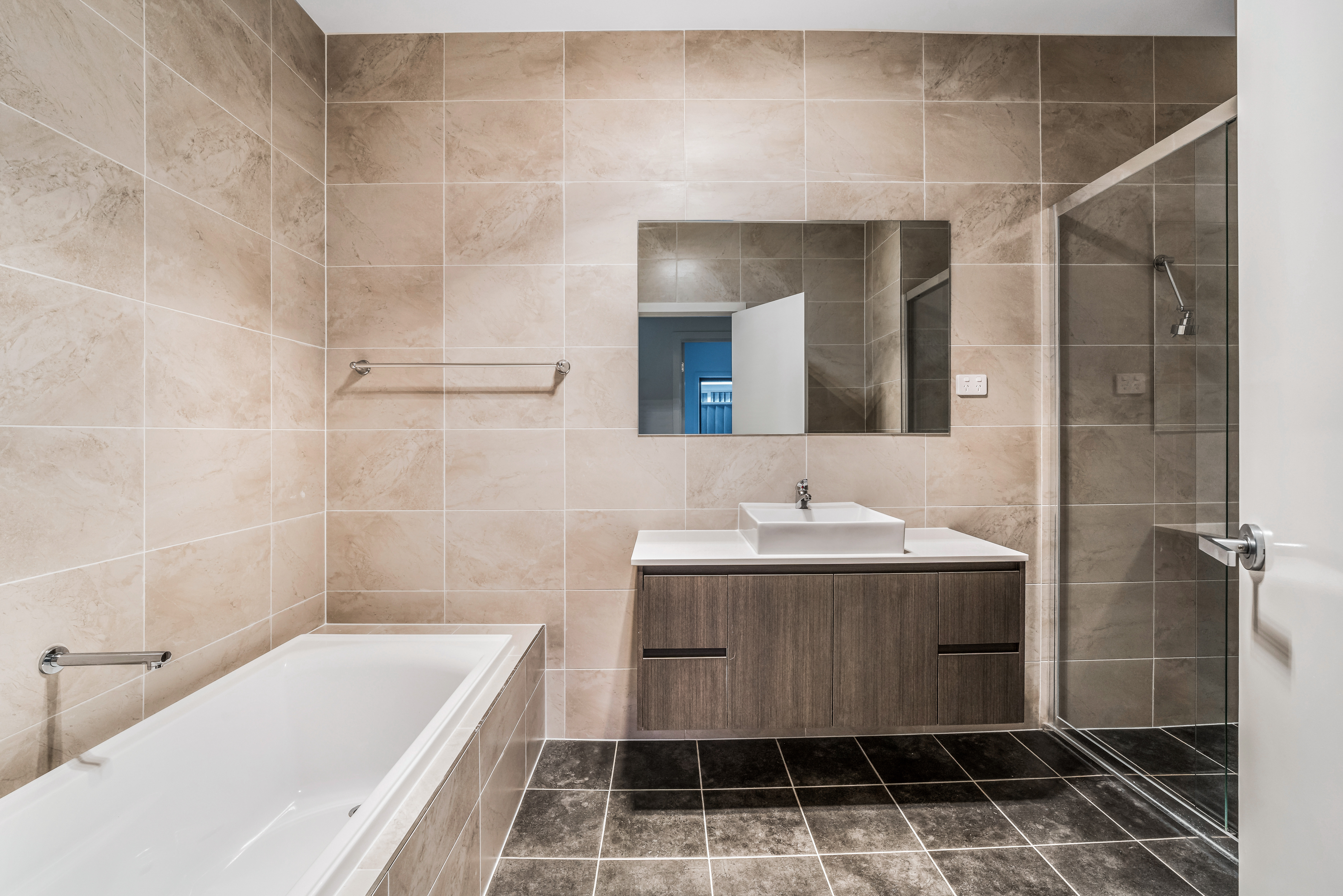 -Modern bathrooms – featuring full-height tiling and premium finishes