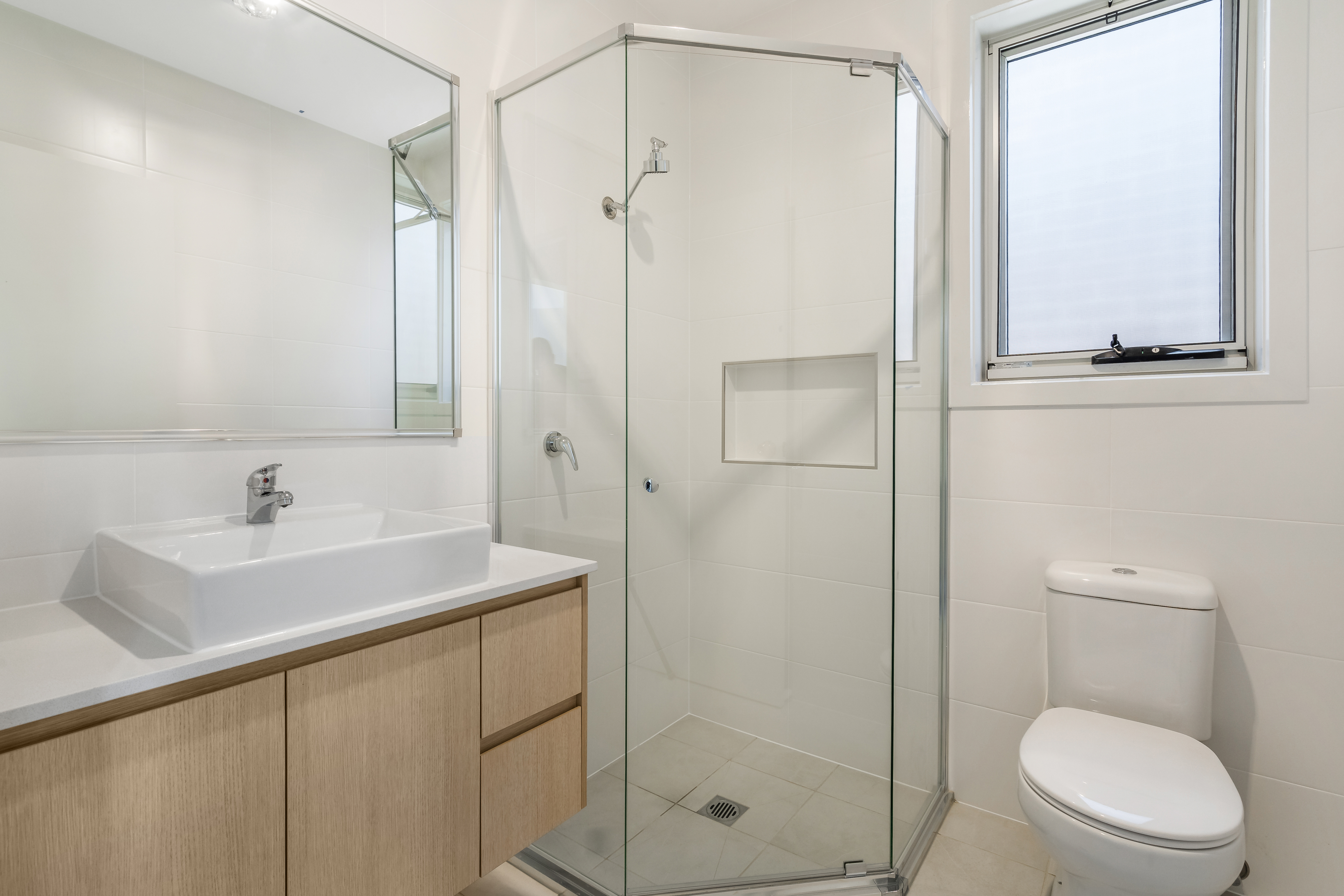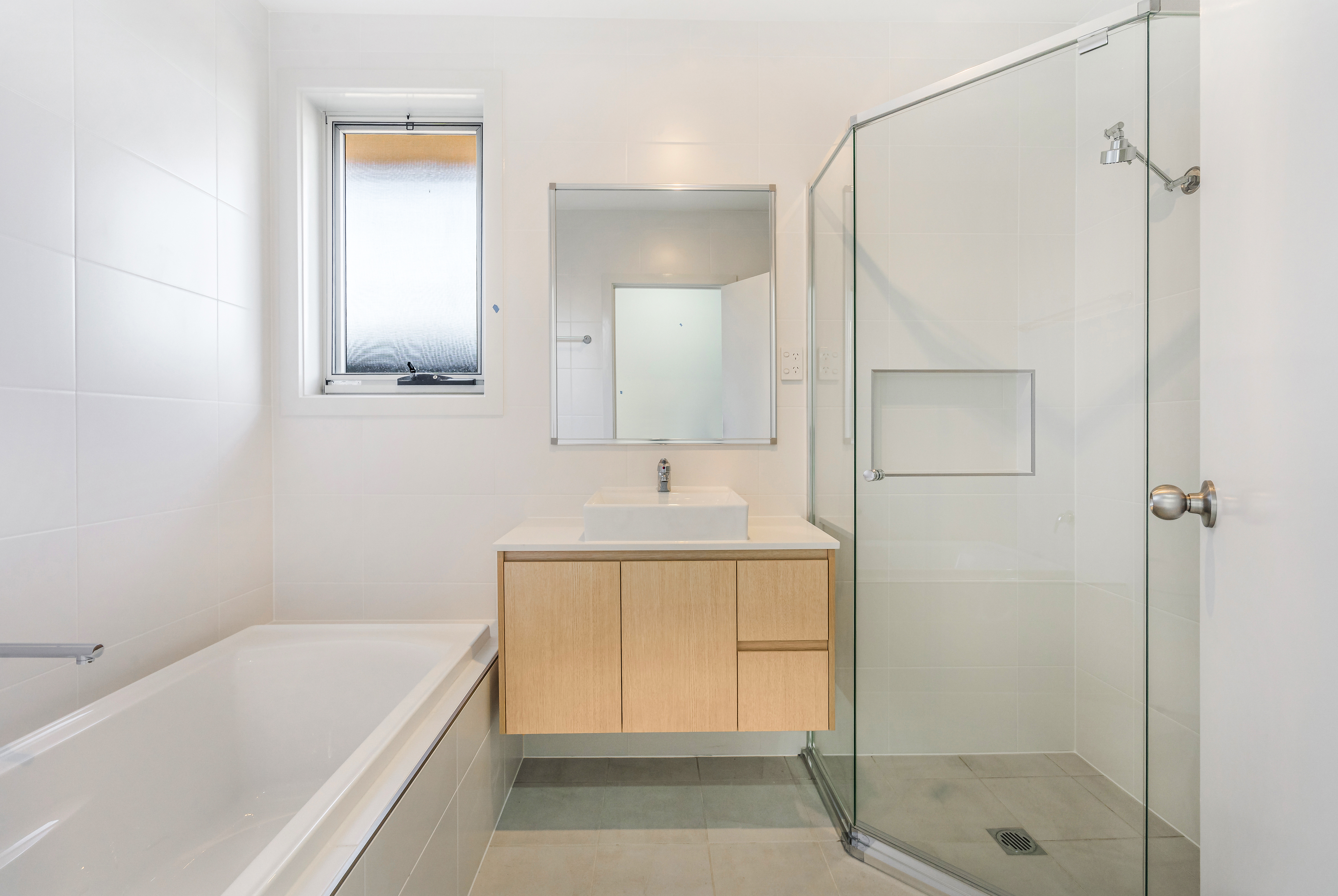 -Full height tiling and high end fittings to bathroom and ensuite including stone bench-tops and shower niches